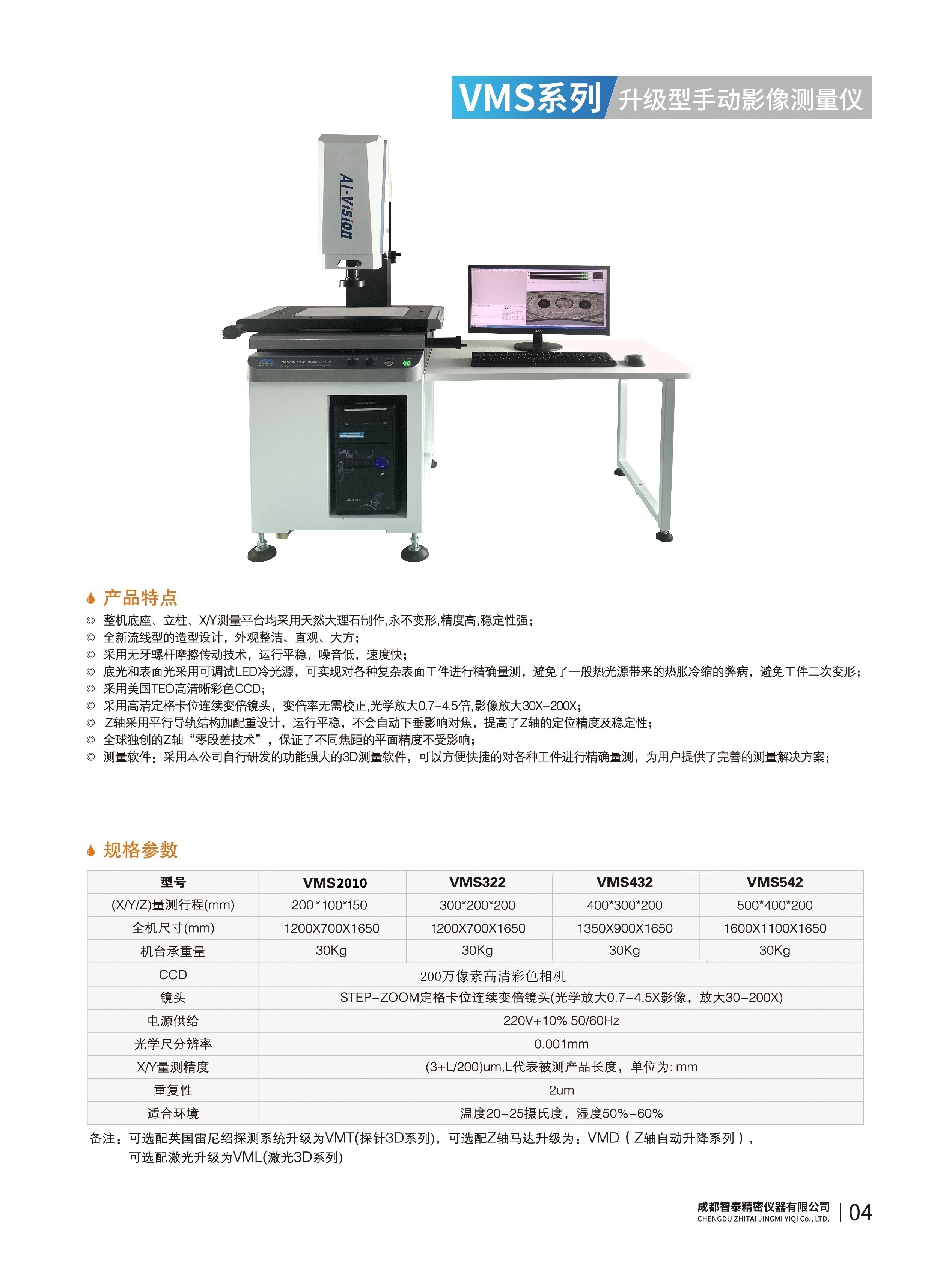 成都智泰精密儀器有限公司專注于精密測量儀器,人工智能,智能制造領(lǐng)域,專業(yè)從事智能視覺自動化檢測解決方案的貿(mào)易型企業(yè)。公司成立于2011年,位于天府之國成都,現(xiàn)有行業(yè)精英十余人,辦公倉儲面積200余平米。 公司主要產(chǎn)品為精密光學影像測量儀,精密輪廓形狀測量儀,精密機器人定位系統(tǒng),精密智能視覺尺寸檢測儀器,精密表面缺陷智能檢測設備,工業(yè)工程特種機器人。 公司憑借過硬的技術(shù)實力和產(chǎn)品方案,率先進入智能視覺自動化檢測領(lǐng)域,推廣以精密智能視覺自動化檢測為基礎(chǔ)的機器人自動化應用,公司不斷整合上下游的資源,擁有巨大的全產(chǎn)業(yè)鏈優(yōu)勢。客戶群體覆蓋了我國精密制造業(yè)的多數(shù)領(lǐng)域,包括航空、航天、軍工、汽車、新能源、光伏、食品,精密電子、精密機械、模具、PCB、LCD、五金、塑膠、醫(yī)療、教育、計量及科研院所等行業(yè)。 公司創(chuàng)新的產(chǎn)品能滿足生產(chǎn)與制造行業(yè)客戶的要求,訓練有素的工程師能及時提供多種技術(shù)服務,如解...